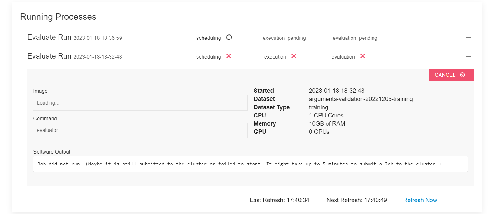 again, sorry for the inconvenience, it took us a while to resolve this issue, the system is now back to normal and executing runs and evaluations are working again now.